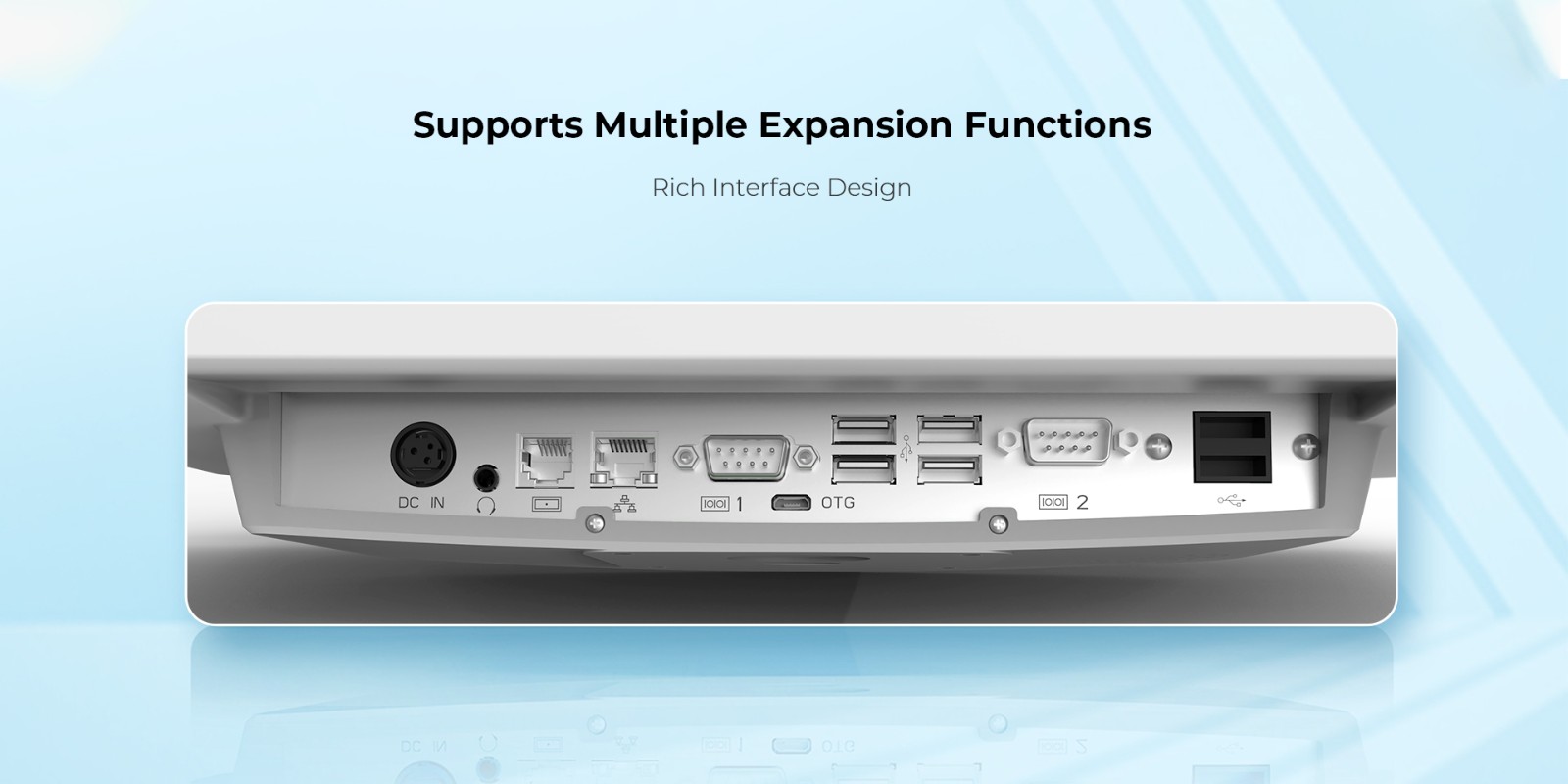 Interfaces6*USB, 2*RS232(DB9), 1*RJ45, 1*Cash Drawer, 1*HDMI,1*DC_OUT(12V)